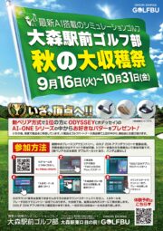 大盤振る舞いコンペ 第2弾!! オンラインコンペ『大森駅前ゴルフ部 秋の大収穫祭』 開催中!9/16~10/31 大森駅前ゴルフ部では、夏に続いて、ゴルファー必見のビッグイベントを連発開催中! 1位の方には…